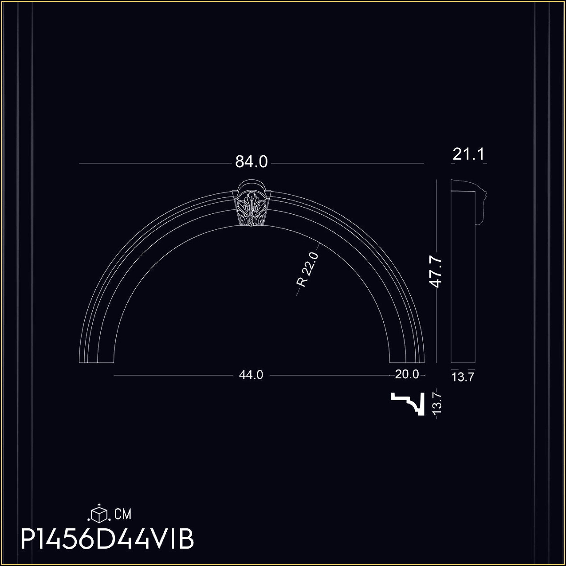 P1456D44VIB Coroana cu raza pentru arcada fereastra usa de 44 cm