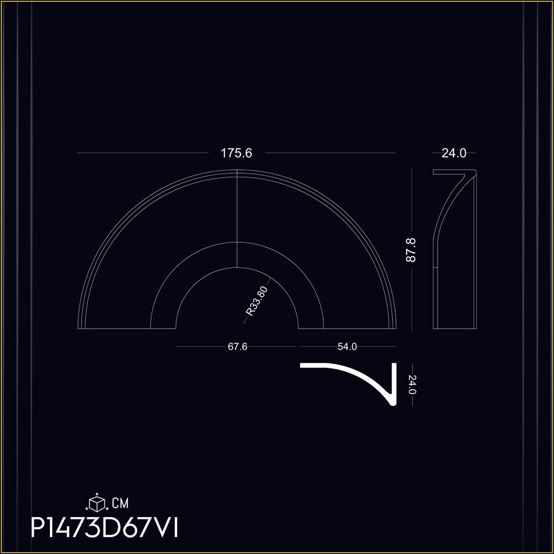 P1473D67VI Coroană cu rază pentru arcadă fereastră ușă de 67 cm