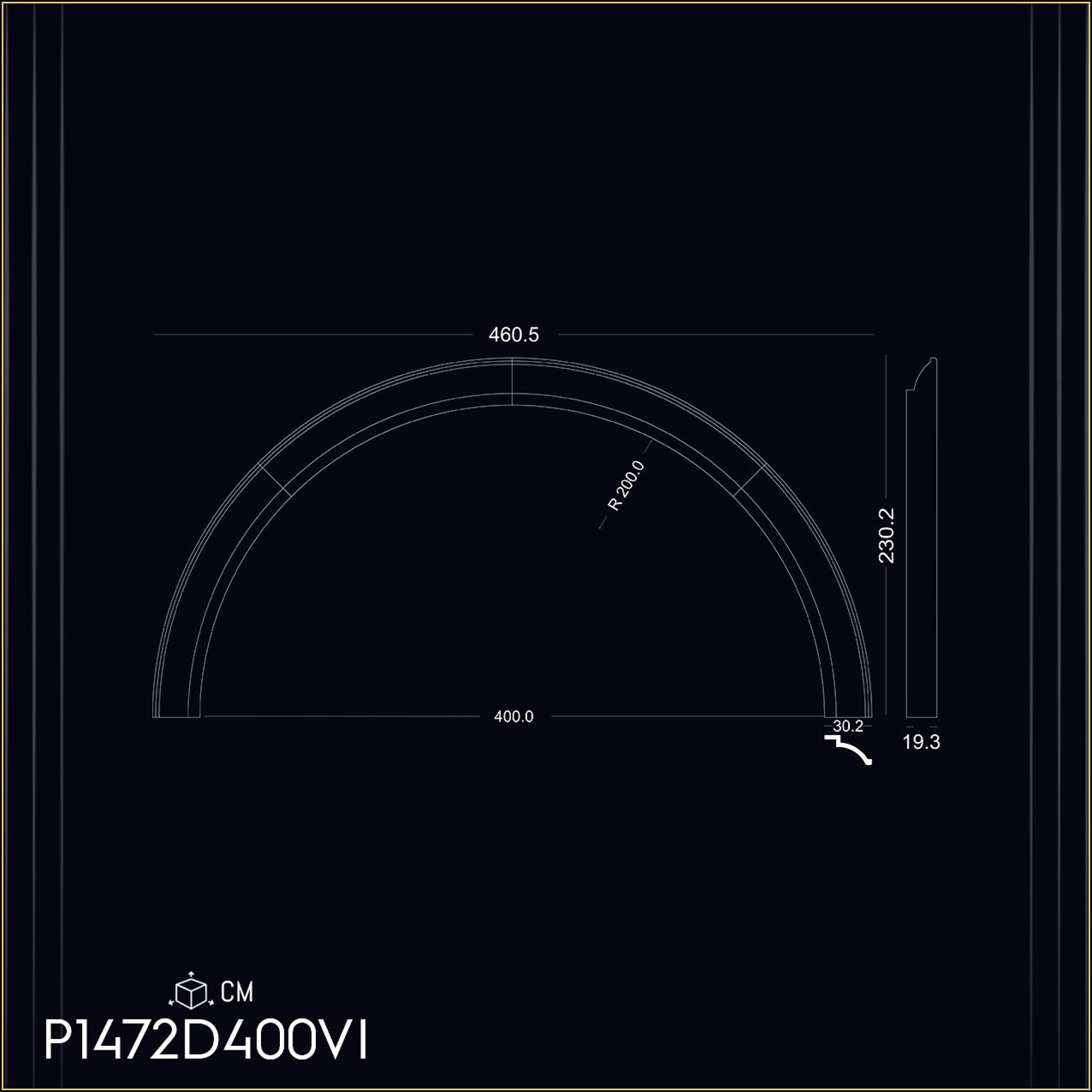 P1472D400VI Coroană cu rază pentru arcadă fereastră ușă de 400 cm