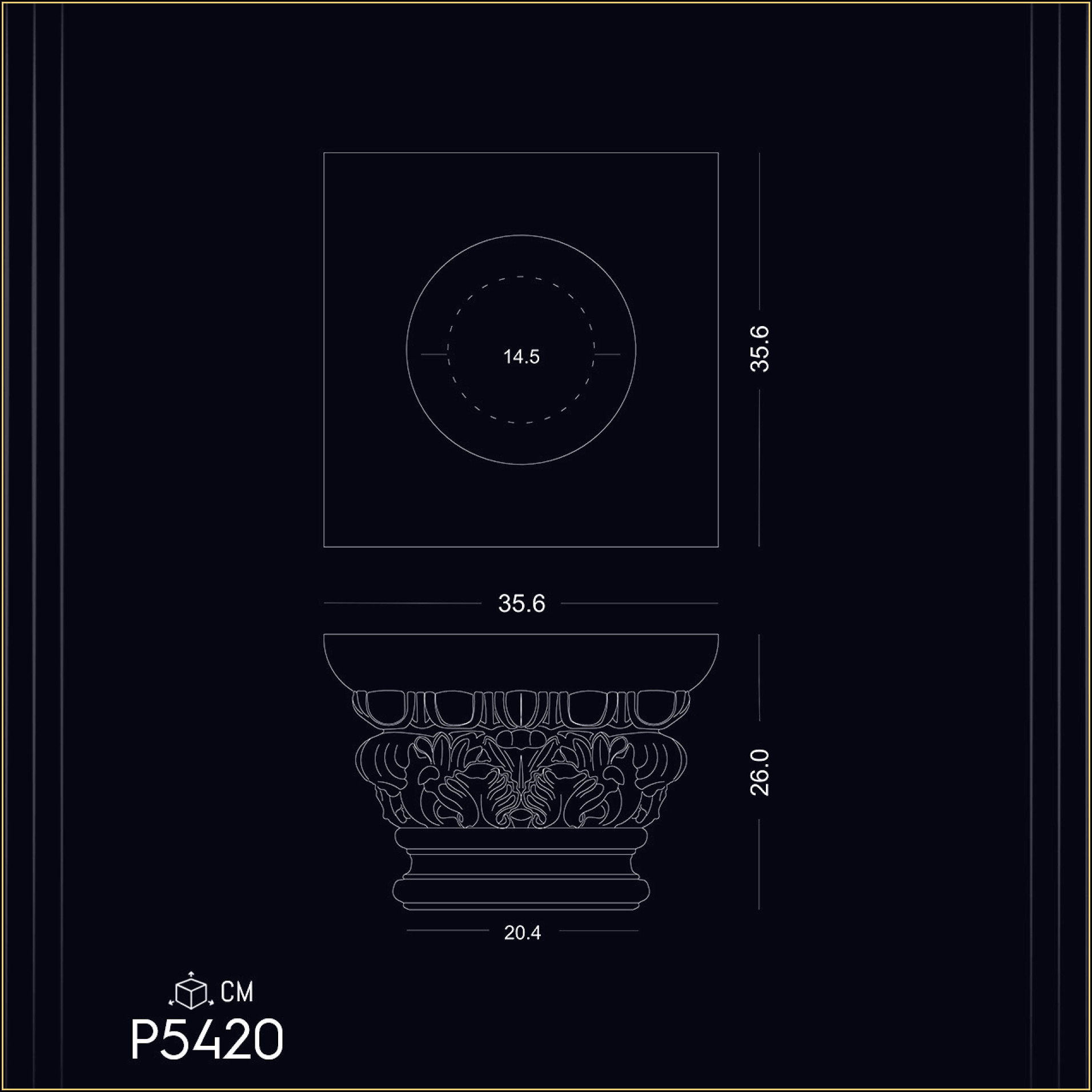 20 cm diameter P5420 Patterned column foot and lower pedestal model, compatible with Corinthian column capital.