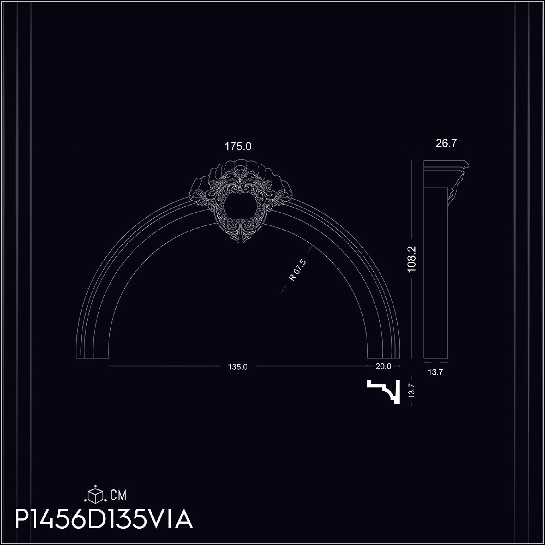 P1456D135VIA Radius crown for 135 cm door window arch