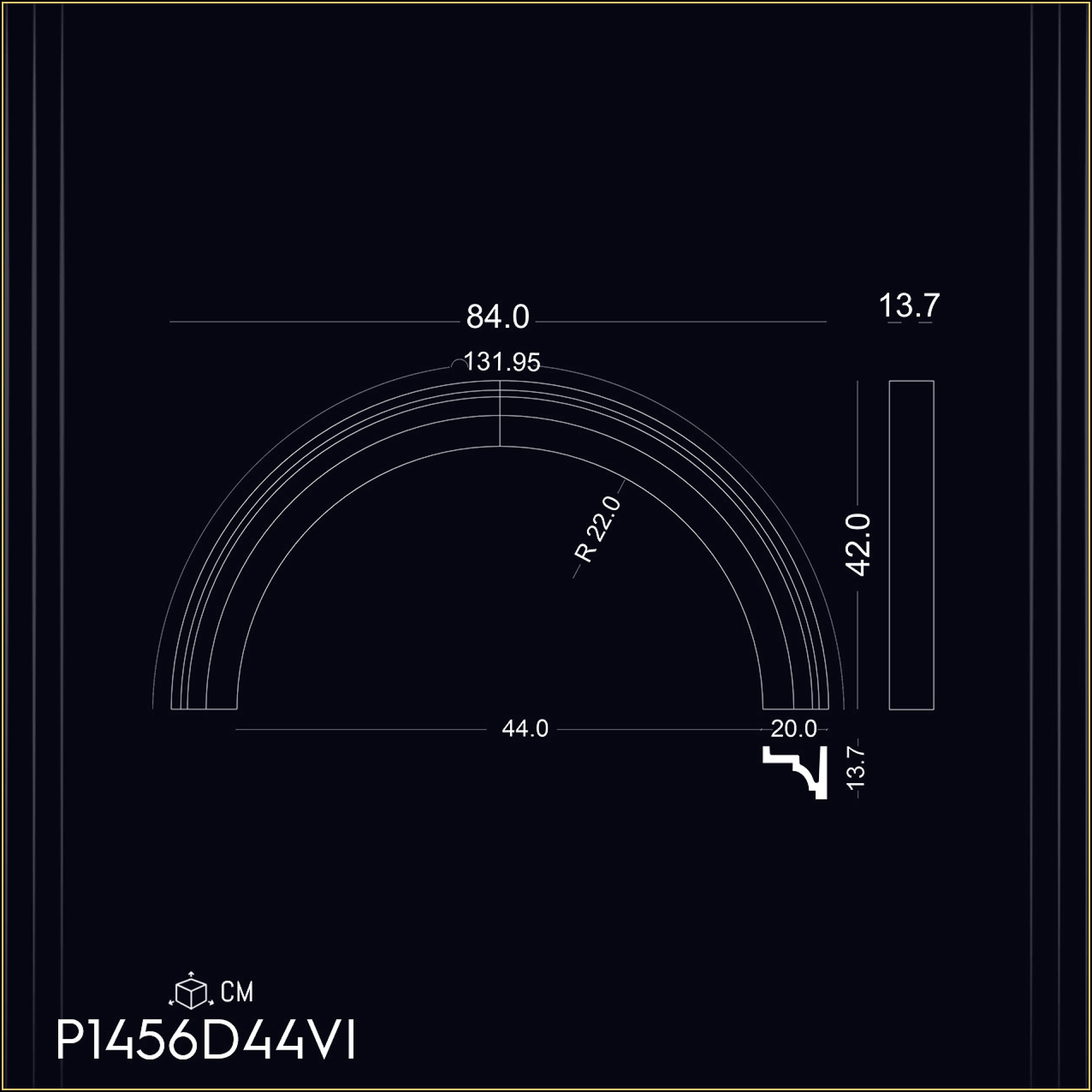P1456D44VI Radius crown for 44 cm door window arch